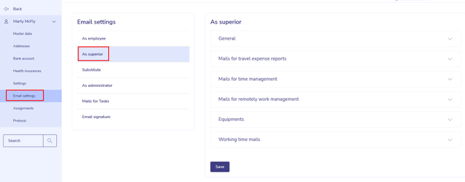 In the section “As superior”, you can manage emails related to your role as a superior.