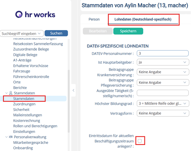 Um Personen an DATEV übermitteln zu können muss zunächst die DATEV-Personalnummer als Pflichtfeld in den Stammdaten Ihrer Mitarbeiter hinterlegt werden. Generell empfehlen wir frühzeitig Kontakt zu Ihrer Steuerberatung aufzunehmen, um sich bezüglich der zu übertragenden Stammdatenattribute abzustimmen. Fehlende Stammdaten können Sie problemlos per Import vervollständigen. Für den Fall, dass die Funktion Lohn & Gehalt in HR WORKS noch nicht genutzt wird, empfehlen wird diese zu aktivieren und Gehaltsdaten für die Übertragung bei Ihren Mitarbeitern zu hinterlegen. Für die Einrichtung dieser Funktion steht Ihnen ein Helpcenter Artikel sowie unser Consulting-Team zur Verfügung.