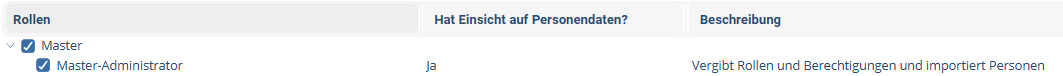 Als Master-Administrator importieren Sie neue Personendaten in das System und vergeben Ihren Mitarbeitern die entsprechenden Rollen und Berechtigungen, über die sie in Ihrem Unternehmen verfügen sollen. Ihnen wird hier zusätzlich automatisch der Personen-Administrator zugewiesen.