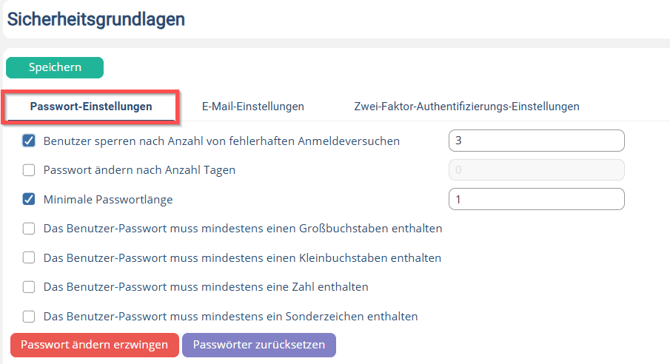 In dem folgenden Artikel erfahren Sie als Administrator, wie Sie Sicherheitseinstellungen zu Passwörtern und E-Mails vornehmen.
