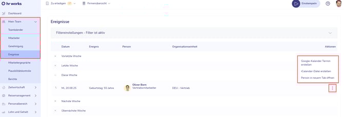 In diesem Artikel erfahren Sie als Vorgesetzter, wie Sie die Ereignisse, wie Jubiläen und Geburtstage Ihres Teams, einsehen und bearbeiten.